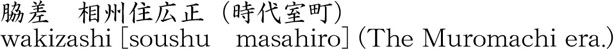 脇差 飛騨守藤原氏房 wakizashi [hida_no_kami fujiwara ujifusa] |