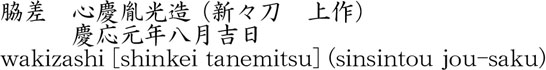 日本刀 脇差 城慶子正明造之(新々刀上作)