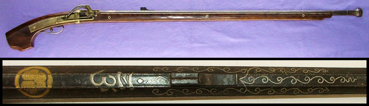 火縄銃 巻張 山田三十作 (真田六文銭に鶴に鯉の滝登りの象嵌)