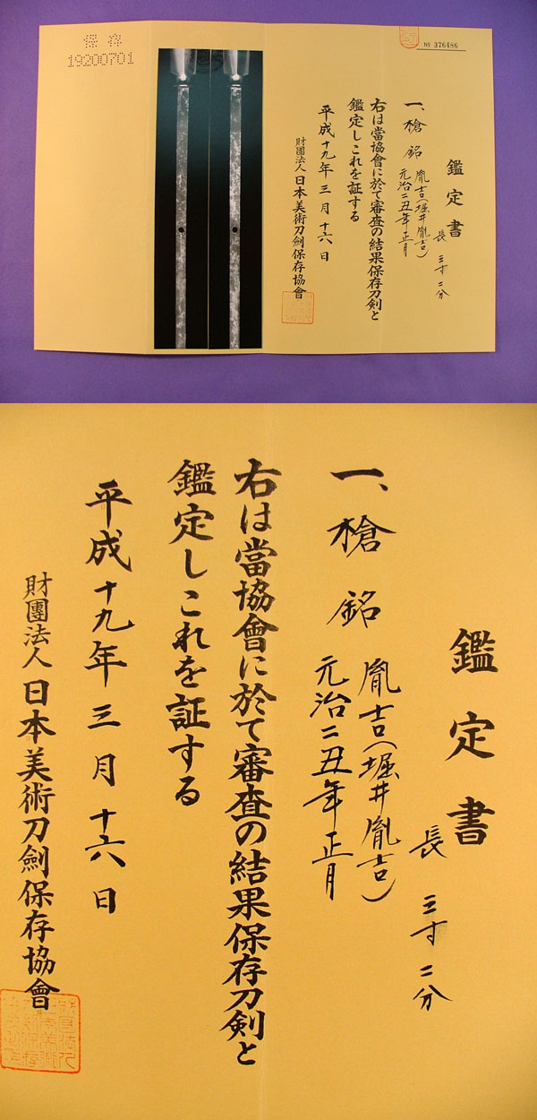 | 【コメント】 本国は近江、大慶直胤の門人で宮内省御用刀匠。 |