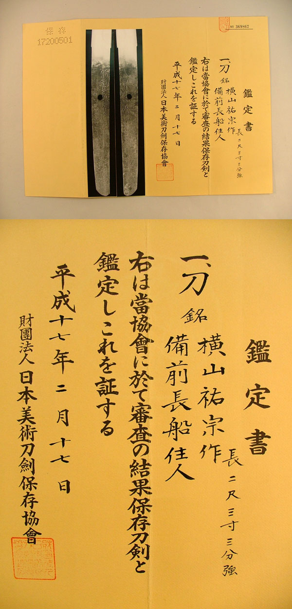 刀 横山祐宗作