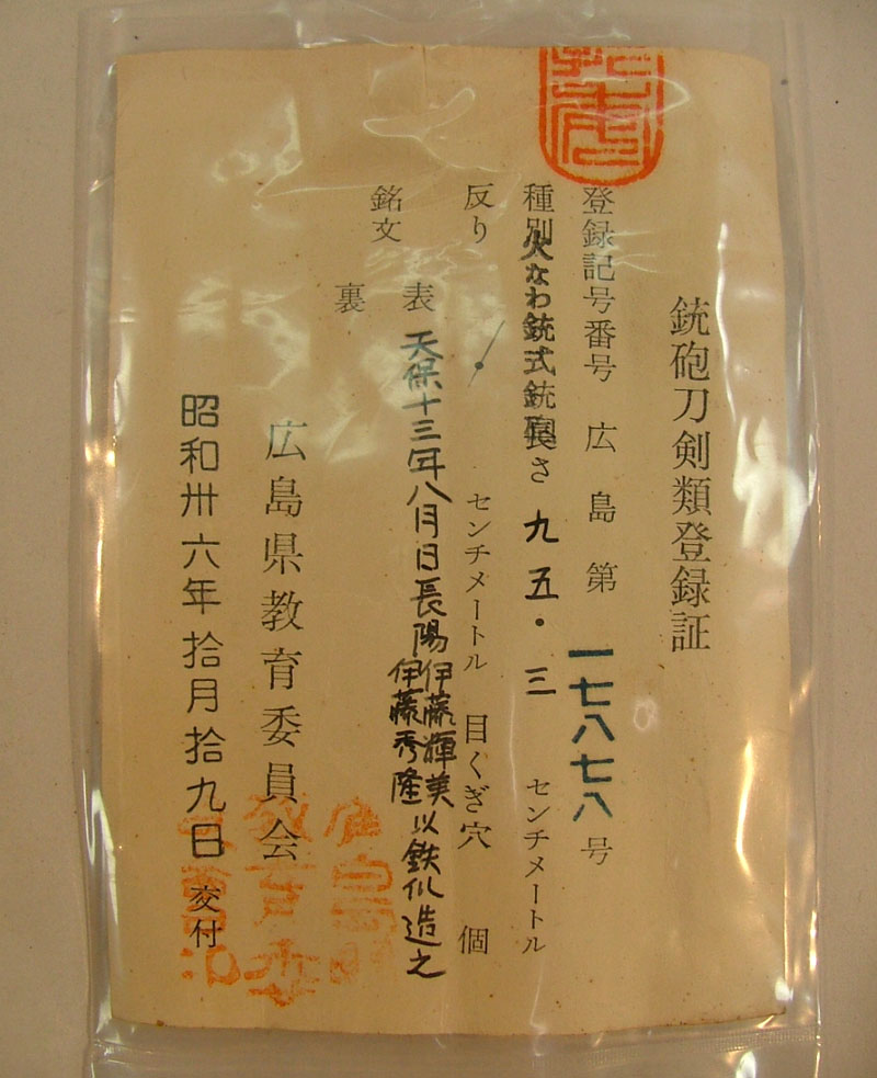 火縄銃 天保十三年八月 長陽 伊藤輝美 伊藤秀隆 以鉄以造之 |