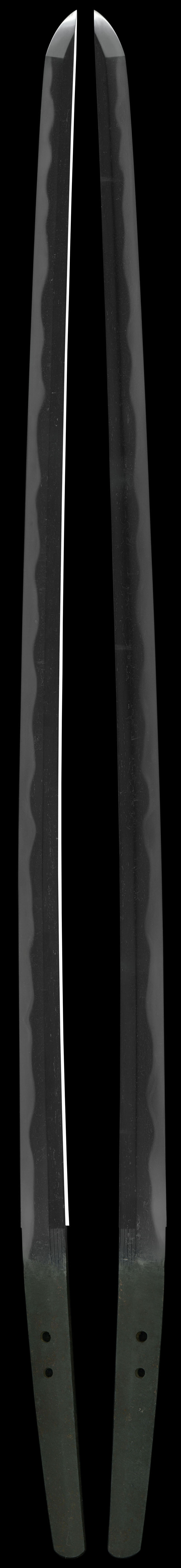 | 【コメント】 尾張は美濃と隣接し刀工の移住が多くそれらを尾張関と称し、中でも政常、氏房、信高、泰幸が有名で、美濃本国とやや趣を異にする独自の作品を残した事により、昔から剣界の玄人筋に人気があったと言われています。 ※この仕込杖拵えに刀身を入れたまま戸外に持ち出したり、杖として使用しますと、法令に触れるおそれがありますので、絶対に行わないで下さい。 |
