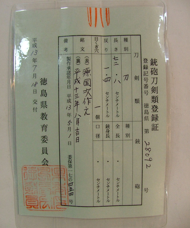 | 【コメント】 本名は田中国次。 父の範国の門人、父と共に斬れる刀を打つ刀匠として有名です。 |