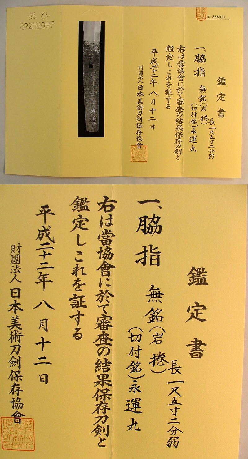 | 日刀保 保存刀剣 NBTHK Hozon | 品番:1010-2062 |