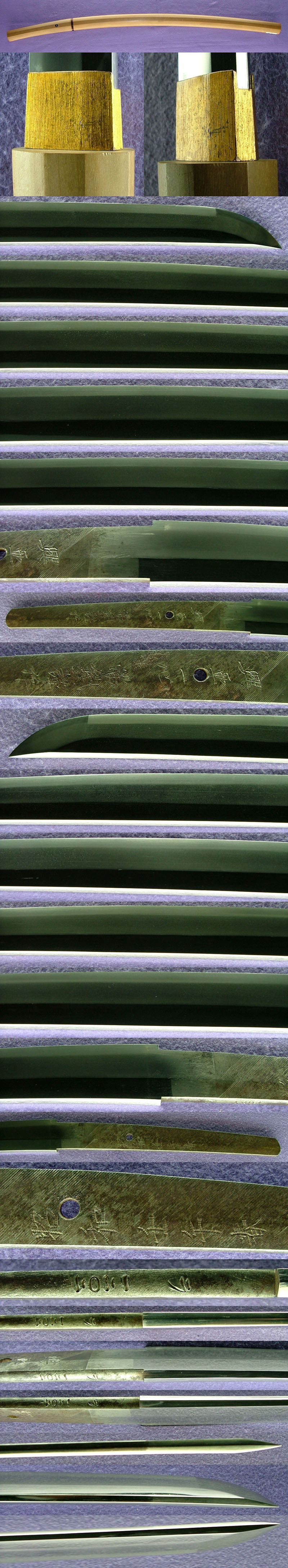 【コメント】 ※興亜一心刀 (満鉄刀) 通称は満鉄刀。満州産の鉄鉱石を低温精錬して得られたスポンジ鉄を再度溶解、成分調整して炭素量の多い鋼と炭素量の少ない純鉄を製造。これをパイプ状に加工したのち日本刀に整形したものであり、古来の日本刀製法にはよらないものの寒冷地で使用しても折れず曲がらずよく切れるとの評判となり、終戦までに約5万振りが生産された。開発・生産ともに南満州鉄道。 ご参照下さい。 http://ja.wikipedia.org/wiki/%E8%BB%8D%E5%88%80 ※※この刀は興亜一心刀 (満鉄刀)です。 ※This sword is a Mantetsu-to. |